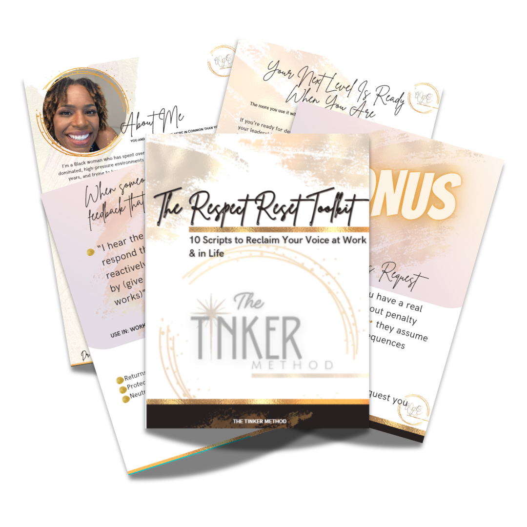 As a Coach and Facilitator, many people would come to me saying they felt stuck and frustrated with their work/life situation. This Toolkit allows you to begin reclaiming your voice, start interrupting disrespect, and step into the version of yourself that God has been preparing. Use this exact language in the Respect Reset Toolkit to level up and lead up with dignity and confidence... INSTANTLY!